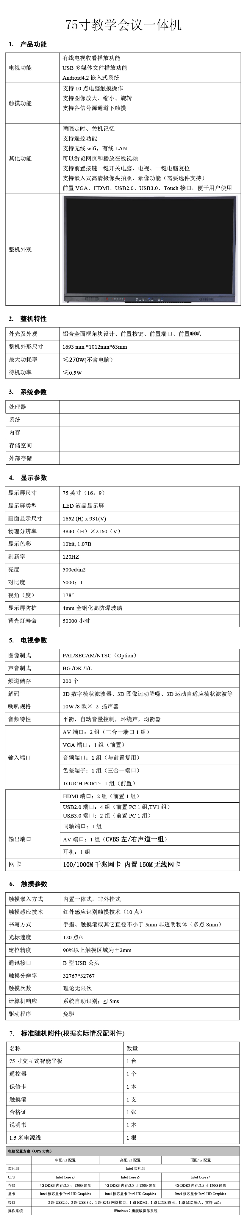 75教學會議一體機